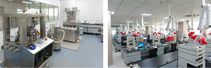 研發(fā)中心化學(xué)部門(mén)擁有150余個(gè)全鋼通風(fēng)櫥及常規(guī)有機(jī)合成裝置;高溫及低溫反應(yīng)裝置(5L~100L;-70~+200℃),惰性氣體保護(hù)及無(wú)水無(wú)氧反應(yīng)系統(tǒng);0.5L-20L高壓氫化反應(yīng)釜;API生產(chǎn)基地具備數(shù)十臺(tái)100L-1000L反應(yīng)釜及200L高壓氫化反應(yīng)釜;信息中心擁有SciFinder, Reaxys等專(zhuān)業(yè)數(shù)據(jù)庫(kù)來(lái)支持各項(xiàng)研發(fā)需求,使用CBIS系統(tǒng)數(shù)據(jù)庫(kù)來(lái)儲(chǔ)存和管理內(nèi)部數(shù)據(jù)。研發(fā)中心質(zhì)量分析和藥物制劑部門(mén)主要儀器設(shè)備均為國(guó)際國(guó)內(nèi)知名品牌: