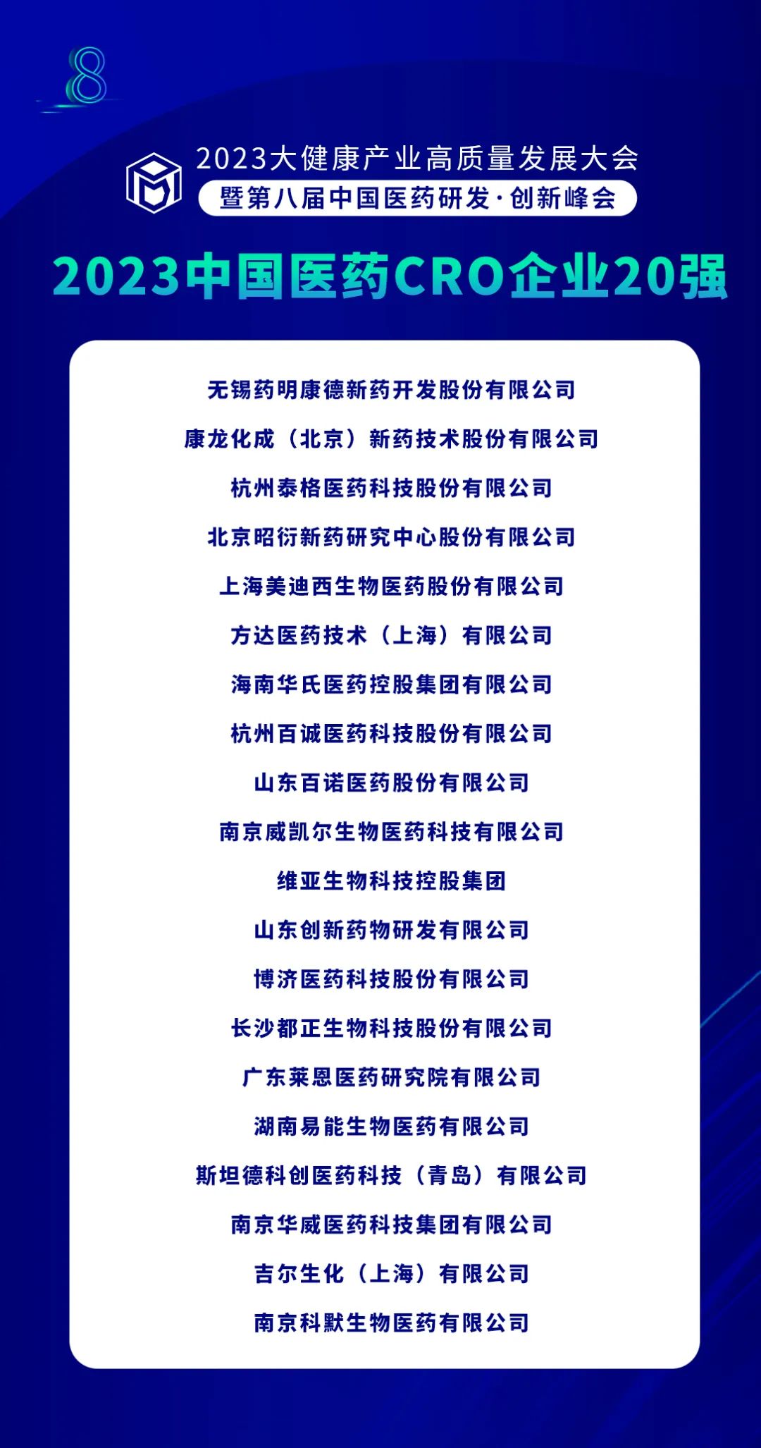 再次入選中國(guó)醫(yī)藥CRO企業(yè)20強(qiáng)