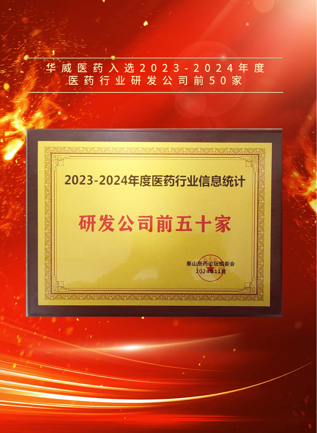近日,第三屆泰山醫(yī)藥論壇暨“2023-2024年度醫(yī)藥行業(yè)信息發(fā)布會(huì)”在山東省濟(jì)南市盛大舉行,南京華威醫(yī)藥科技集團(tuán)有限公司(以下簡(jiǎn)稱(chēng)“華威醫(yī)藥”)憑借其在醫(yī)藥研發(fā)領(lǐng)域的卓越貢獻(xiàn)和技術(shù)創(chuàng)新能力,榮耀入選“2023-2024年度醫(yī)藥行業(yè)研發(fā)公司前50家”。