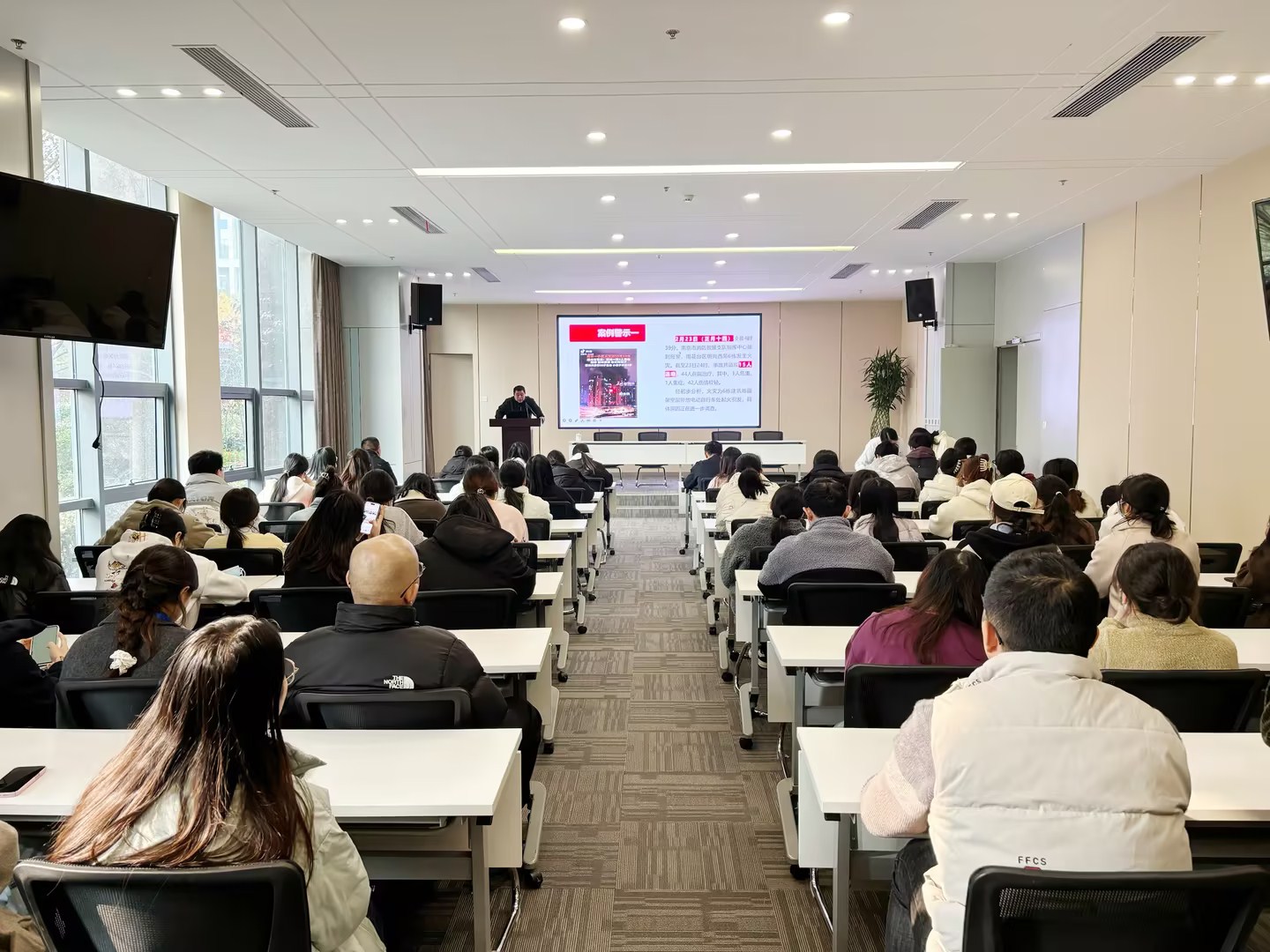 為確保培訓(xùn)的專(zhuān)業(yè)性和實(shí)用性,華威醫(yī)藥特別邀請(qǐng)外部專(zhuān)業(yè)的消防培訓(xùn)講師,在公司報(bào)告廳內(nèi)為全體員工進(jìn)行了詳盡的消防安全知識(shí)授課。講師通過(guò)理論講解、案例分析以及互動(dòng)問(wèn)答等多種形式,深入淺出地向大家講解了火災(zāi)預(yù)防措施、初期火災(zāi)撲救方法、火場(chǎng)逃生技巧等重要知識(shí),并強(qiáng)調(diào)了日常工作中防火安全的重要性。